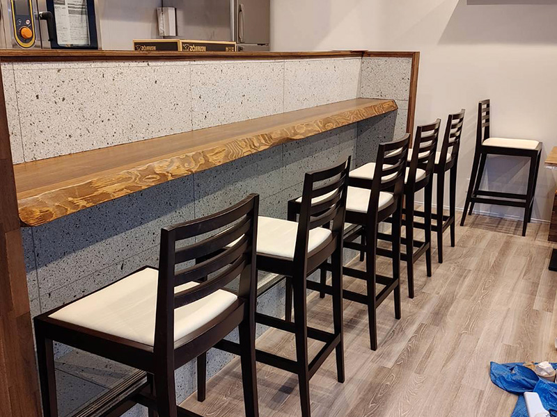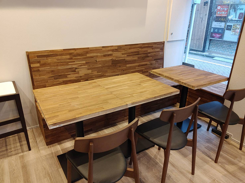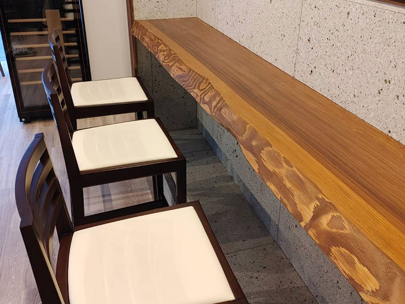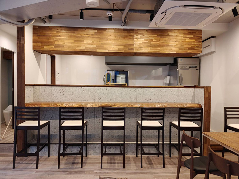 店内中央には、木の質感が映えるカウンター席を設置しました。