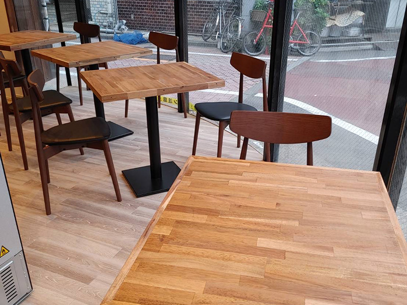 テーブル席はゆったりとした配置とし、少人数から複数名まで対応可能なレイアウトとしています。